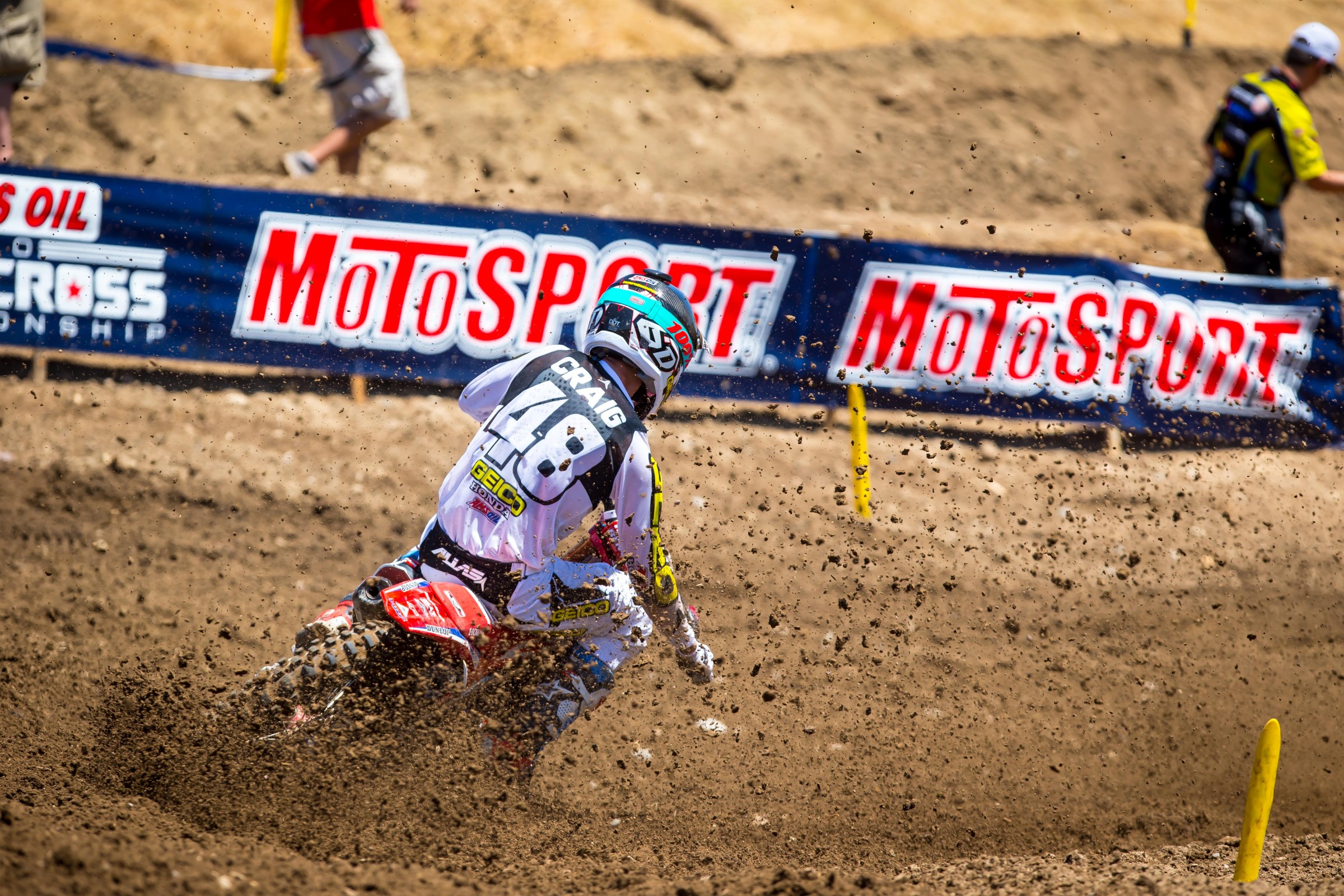 If you’re wondering why Wilson and Barcia both crashed in the first moto, you can blame Jason Anderson, although it wasn’t entirely his fault. Anderson took some heavy-duty roost to the face, which opened up a cut, which in turn caused blood to flow into Anderson’s eyes and blind him. In case you didn’t know, it’s hard to race a motorcycle when you can’t see, and Anderson attempted to exit the track and ended up taking Barcia and Wilson down as he did so. Anderson had a crash early in the second moto but was still able to make his way back up to sixth.