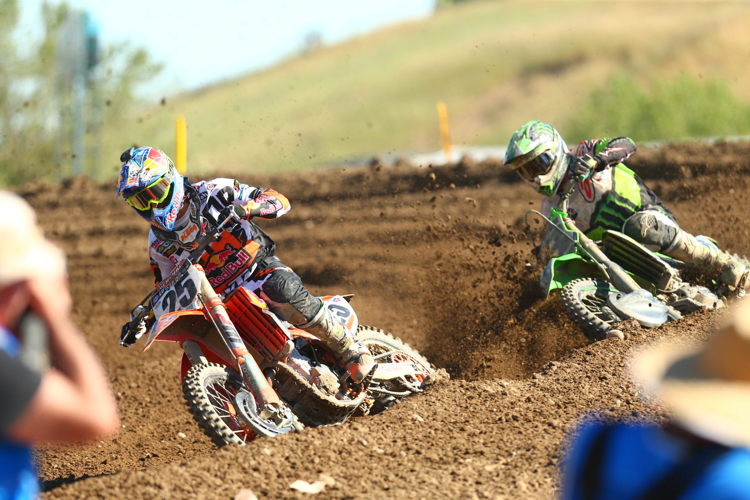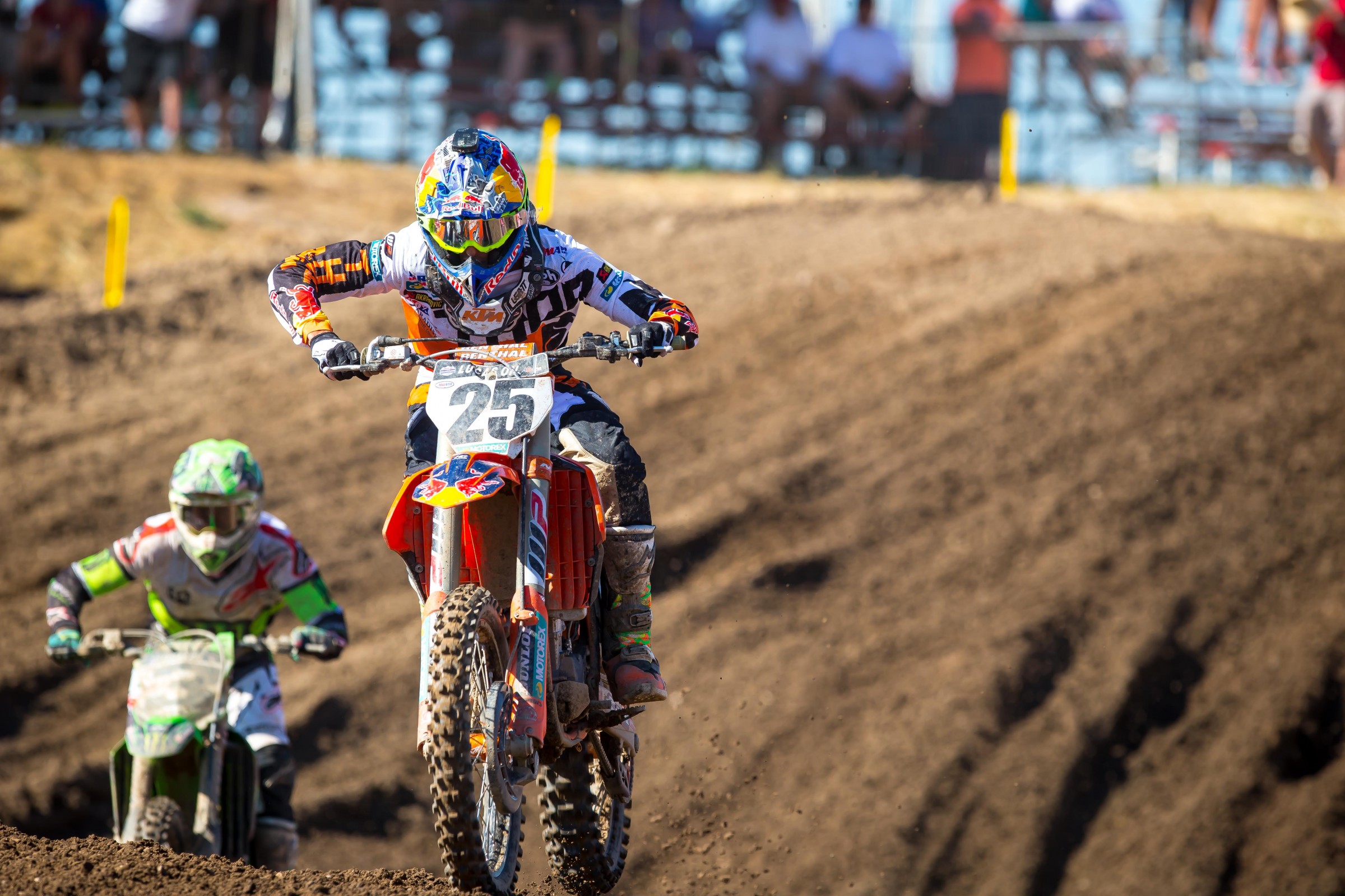 “I really wanted to be on the podium today, that was my goal,” Musquin said. “It’s not easy. You have two weeks coming into Hangtown and you don’t know where you’re at, really. You feel it in practice, but when you get on the racetrack it’s a different story. But I’m pretty happy with the bike and the team has been working really well. I’m happy to be second today. The track was really challenging, and like Eli said, you want to go faster, but it’s easy to make mistakes and you don’t want to crash. I was in a good position in that second moto, I knew where Eli was, but he was better than me all day. I knew he was going to be on my rear wheel. I tried my best, I tried to pass him back, and I think it was a good show for the crowd. With all the ruts I thought it was maybe a little sketchy, but I tried not to get too dirty or cross-jump or anything. I think it was a good battle. In the end he got me but I think two seconds is a good start.”